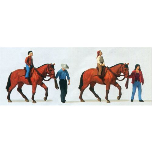 PF10794 乗馬のレッスン 塗装済 1/87 H約2-3cm 人物4体、馬2頭入