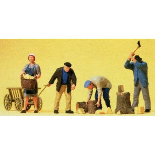 PF10539 薪を割る人/荷車で運ぶ人 塗装済 1/87 H約1.3-2.4cm 4体入