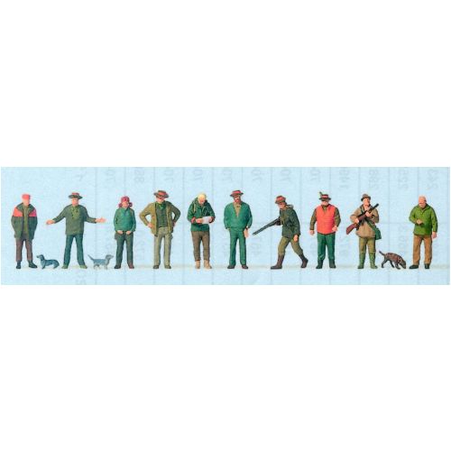 PF10803 ハンターと助手 塗装済 1/87 人物H約2.0cm 人物10体+犬3体入