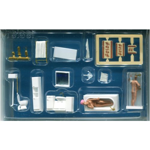PF10631 バスルームのカップル 塗装済 1/87 人物 H約2.0cm 2体+バスルーム備品