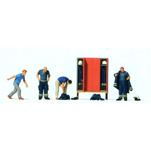 PF10642 出動準備をする消防士 塗装済 1/87 H約1.8-2.0cm 4体+ロッカー