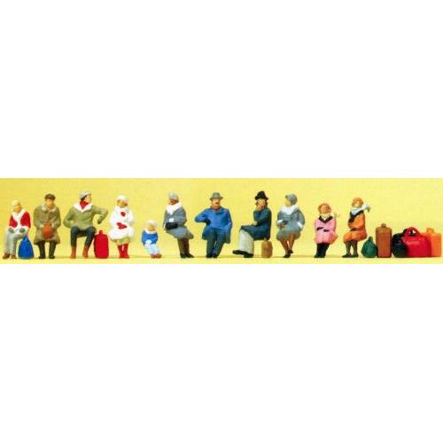 PF10317 座っている人(冬服) 塗装済 1/87 H約1-1.8cm 11体+バック、旅行カバン