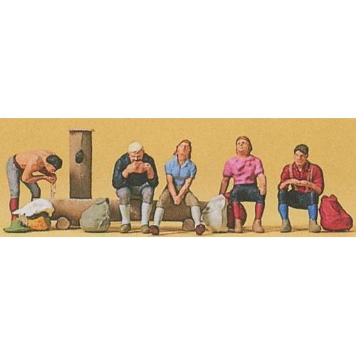 PF10443 休憩中のハイカー/水飲み場 塗装済 1/87 H約1.2-1.5cm 5体+水飲み場