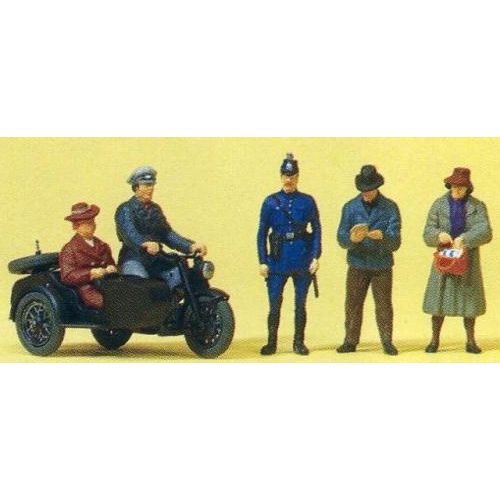 PF10565 バイク(KS 750)に乗っている人、警察官、通行人 塗装済 1/87 H約2-2.2cm 5体+サイドカー付きバイク