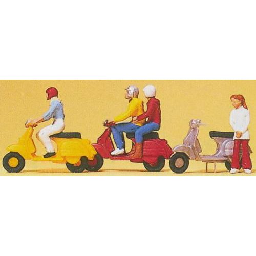 PF10128 スクーター(Vespa)/人物 塗装済 1/87 H約2cm 3台/4体入