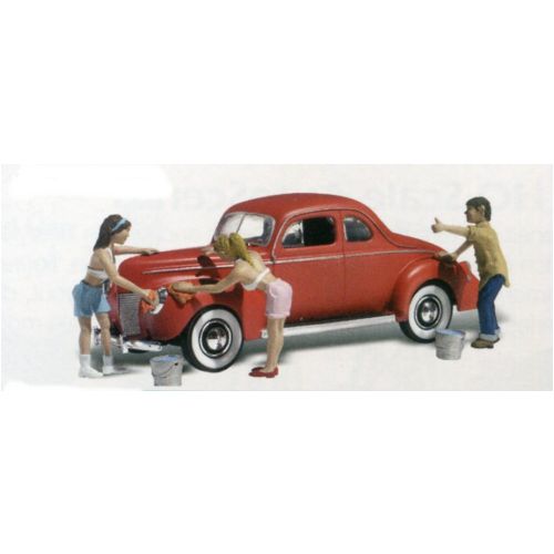 WSAS5533 洗車 塗装済 1/87 車 L約5.5cm/H約2.0cm 1台+3体 アクセサリー