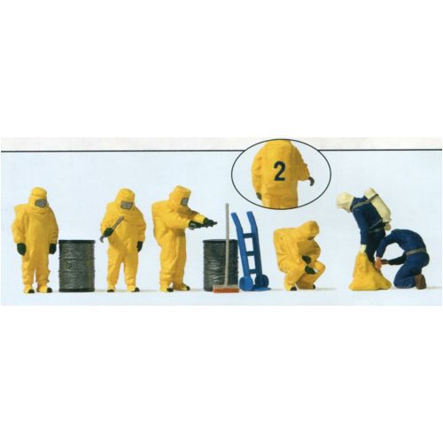 PF10733 放射線汚染防護/化学防護隊 (黄) 塗装済 1/87 H約1.1-2.1cm 6体+ドラム缶他アクセサリー