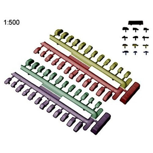 SZ03-20104 未塗装 乗用車、軽トラック、バス13種セット (カラー) 1/500 L約0.6-2.5cm 125台入