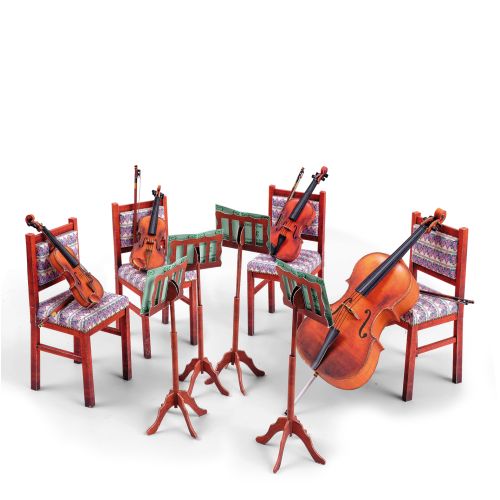 SB737 弦楽四重奏 楽器・楽譜台・イスセット 1/5 中級者向きペーパークラフトモデル(組立式)
