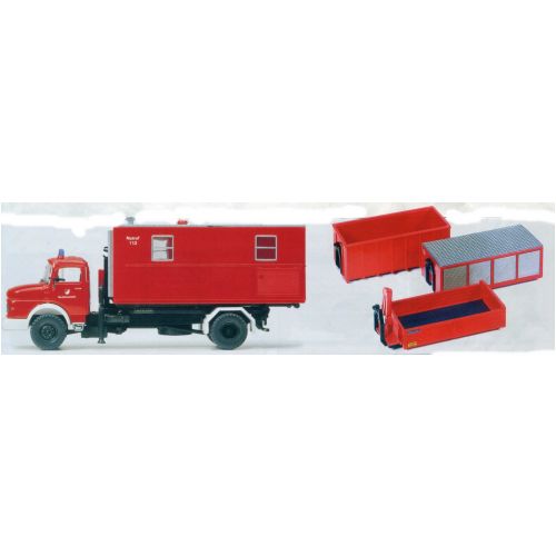 PF31116 組立式キット 消防用トラック(Roll-off tipper MEILLER) 1/87 L約10.0cm/W約2.5cm 1台+コンテナー4台