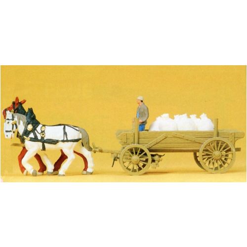 PF30436 荷馬車 塗装済 荷台L約5.5cm 馬2頭、人物2体入