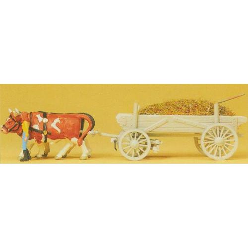PF30474 牛車(白黒牛/白茶牛) H2.5cm/L7cm 牛2頭、人物1体入