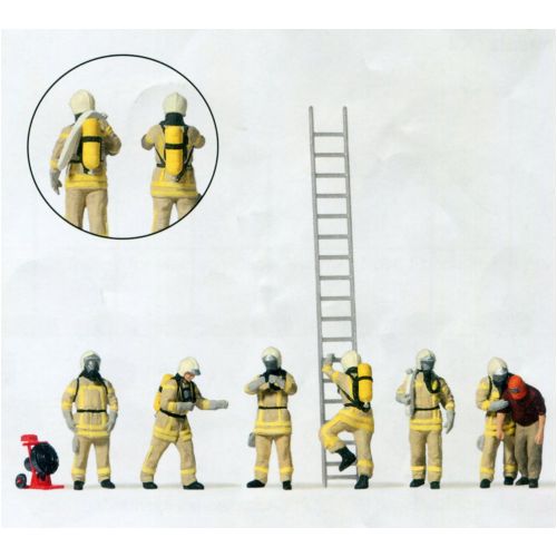 PF10774 呼吸装置を付けた消防士と救助された人 ユニフォーム:ベージュ 塗装済 1/87 H約2.1cm 7体+ハシゴ他入