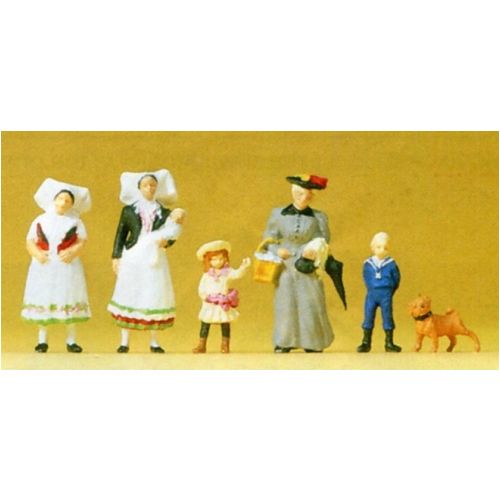 PF24608 1900年頃の衣装を着た人々 塗装済 1/87 H約1.0ー2.0cm 5体+イヌ入