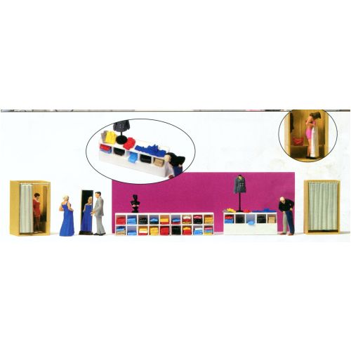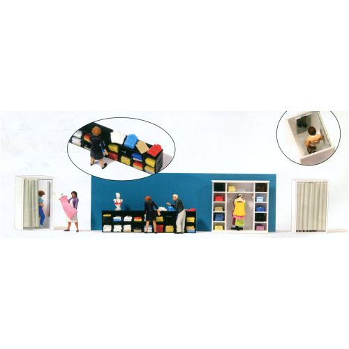 PF10622 洋服を選んでいる人々 塗装済 1/87 H約1.8-2.0cm 5体+試着室、商品置き場、商品