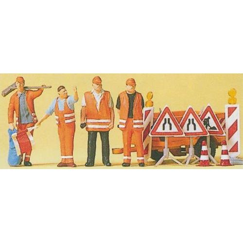 PF10347 道路誘導員/作業員/標識/台車 塗装済 1/87 H約2cm 4体+デカール付き