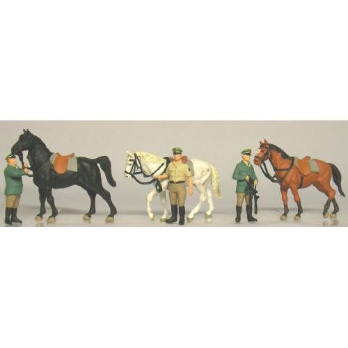 PF10583 警察官(ドイツ)と馬 塗装済 1/87 人物H約2cm/馬H約2-2.7cm 人物3体、馬3体入