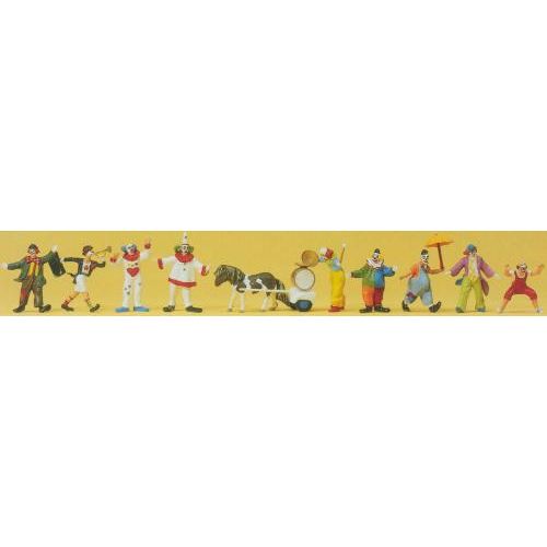 PF20258 サーカス 塗装済 1/87 H約1.7-2.5cm ピエロ9体/馬1体入
