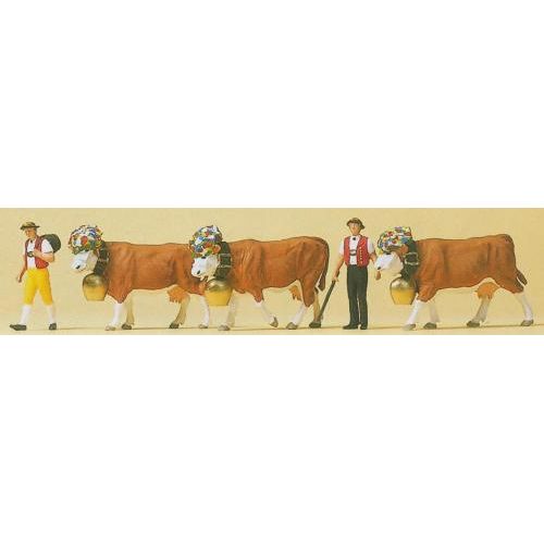 PF10404 ”秋の牧くだり” Almabtrieb 牛飼いと雌牛 1/87 牛 H約2cm/L約3.5cm 5体入