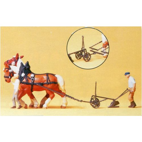 PF30431 馬に鋤を引かせる農夫 塗装済 人物H約2.0cm、馬H約3.0cm 馬2頭、農夫2体入