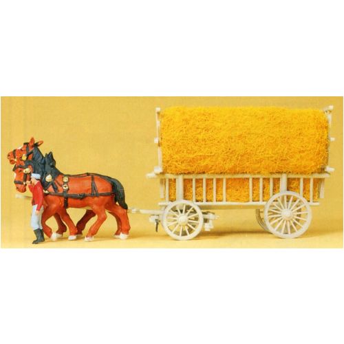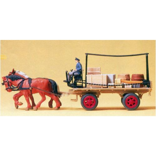 PF30434 荷馬車 塗装済 荷台L約4.5cm、馬H約2.5cm 馬2頭、人物1体入
