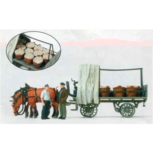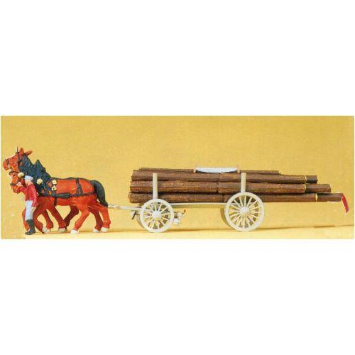 PF30465 長い木材を運ぶ荷馬車 塗装済 荷台L約7.5cm、人物H約2.0cm 馬2頭、人物1体入