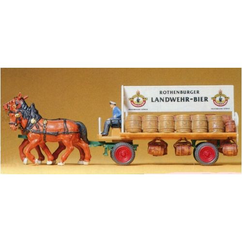 PF30462 ビール樽”LANDWEHR-BIER”を運ぶ馬車 塗装済 荷台L約6.0cm 馬2頭、人物1体入