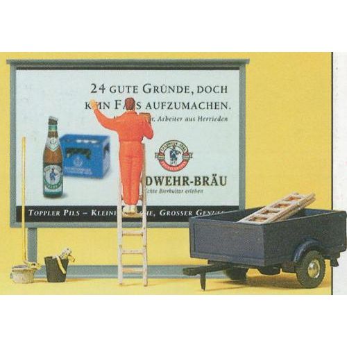 PF10526 看板作業員 塗装済 1/87 人物H約2cm 1体+看板、ハシゴ、台車他