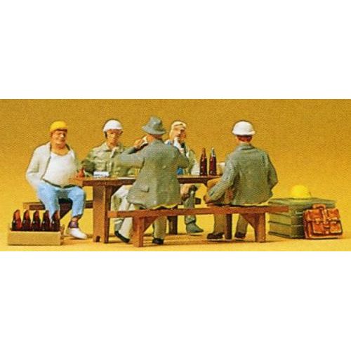 PF10338 休憩中の作業員 塗装済 1/87 H約1.7cm 5体+テーブル、ベンチ、ビール他
