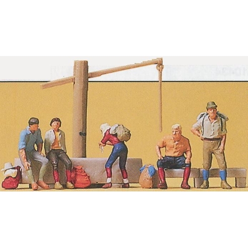 PF10441 休憩中のハイカー/手押しポンプ 塗装済 1/87 H約1.5-2.2cm 5体+ポンプ(H約3.2cm)