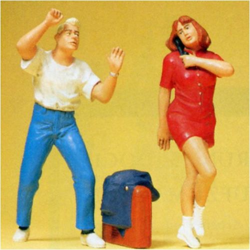 PF45129 電話ボックスの男女 塗装済 1/22.5 H約8.0cm 2体+カバン入