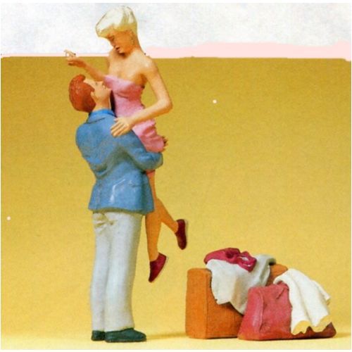PF45120 カップル 塗装済 1/22.5 H約10cm(男性H8.0cm) 2体+旅行カバン、バック