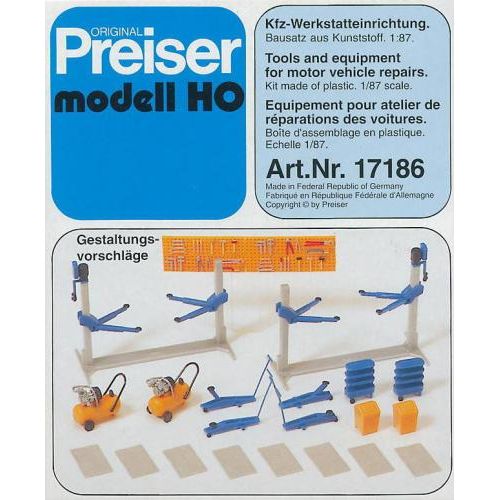 PF17186 未塗装キット 自動車整備用具(リフト,工具,ゴミ箱,他) 1/87 リフトH約2.8cm/W4cm