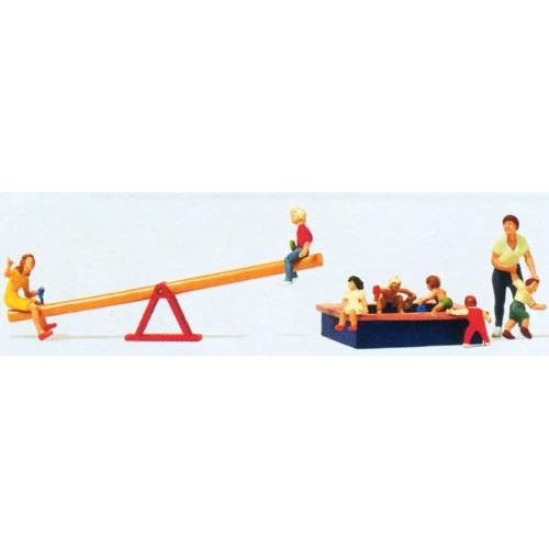 PF10587 シーソーと砂場で遊ぶ子供 塗装済 1/87 H約0.7-2.1cm 8体+シーソー(L=5.3cm)、砂場(2.3×2.3cm)
