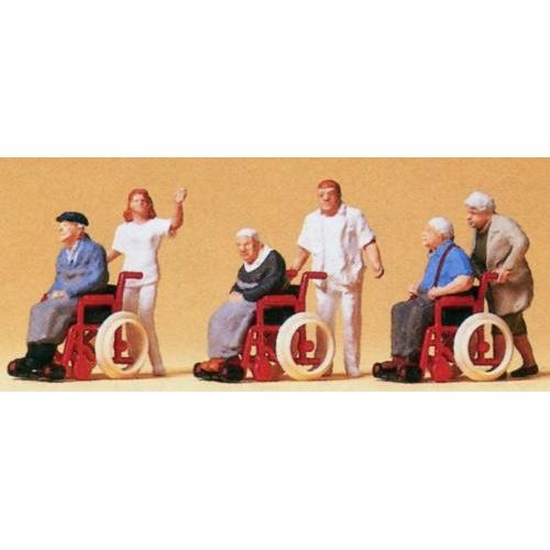 PF10479 介添人と車椅子の人 塗装済 1/87 H約1.6-2.1cm 6体入