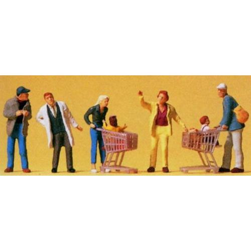 PF10492 買い物客、ショッピングカートに乗った子供 塗装済 1/87 H約0.8-2.2cm 7体入