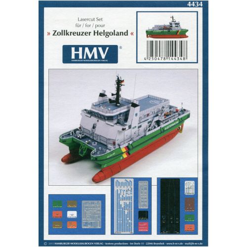 SB4434 税関巡視艇 Zollkreuzer Helgoland/Borkum用レーザーカット代替パーツ 1/250 上級者向きペーパークラフトモデル(組立式) 数量限定特価