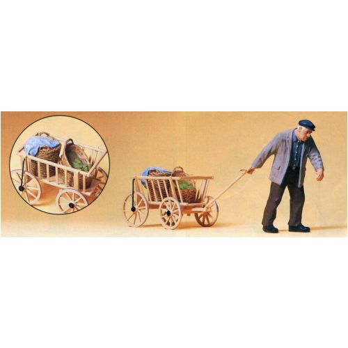 PF45109 荷車を引く農夫 塗装済 1/22.5 H約6.8cm 1体+荷車入