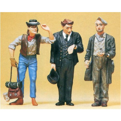 PF45099 アメリカの車掌とホームレス(hobos) 塗装済 1/22.5 H約7.5ー7.7cm 3体+手荷物入