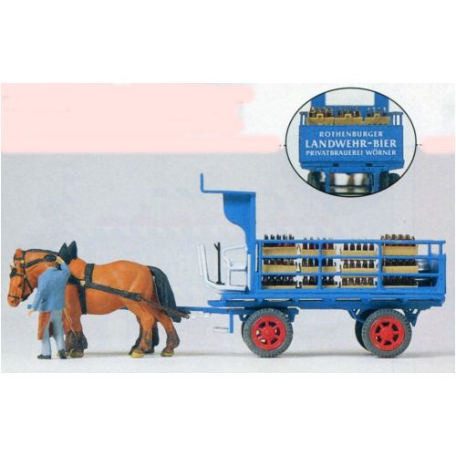 PF30445 ビール瓶”LANDWEHR-BIER”を運ぶ馬車 塗装済 荷台L約5.0cm、人物H約2.0cm 馬2頭、人物1体入