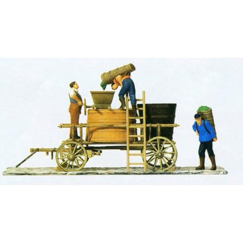 PF30398 ブドウを荷車に積み込む人 塗装済 荷車 約H2.8cm/L5cm 人物3体入