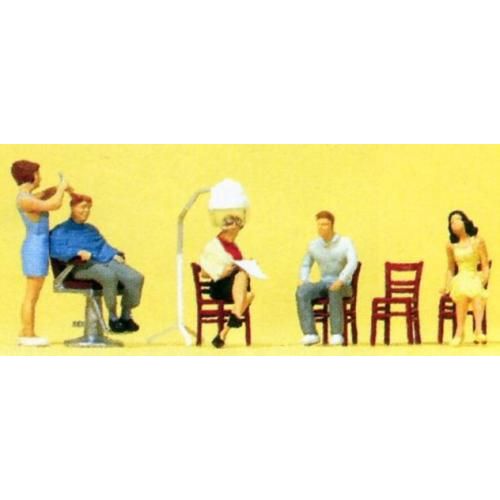 PF10569 美容院(美容師、髪をカットする男性、パーマをかける女性他) 塗装済 1/87 H約1.5-2.1cm 5体入