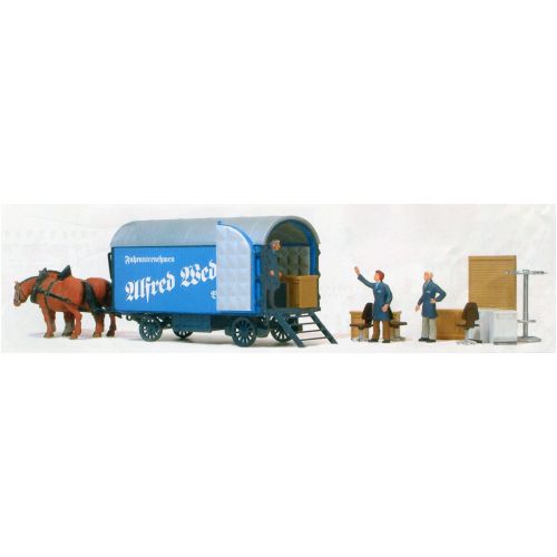 PF30494 家具を運ぶ荷馬車 塗装済 荷台L約7.0cm、人物H約2.0cm 馬2頭、人物3体、アクセサリー入