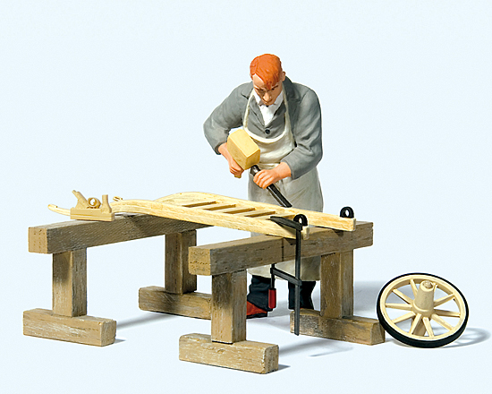 PF45520 手押し車を作っている人 塗装済 1/22.5 H約7.5cm 1体入 作業台、手押し車付
