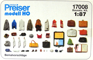 PF17008 未塗装キット カバン/バック/スーツケース/洋服/帽子/靴/他小物セット 1/87