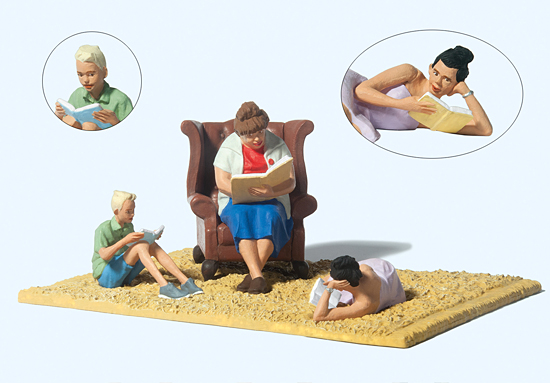 PF44939 楽しく読書 塗装済 1/22.5 H約1.8-5.0cm 3体 +イス、マット
