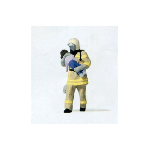 PF28251 消防士と救助された子供 ユニフォームブルー 塗装済 1/87 H約2.0cm 2体入