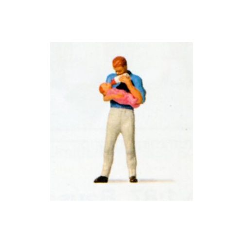 PF28177 「イクメン」 ミルクを飲ませているお父さんと赤ちゃん 塗装済 1/87 H約1.9cm 2体入