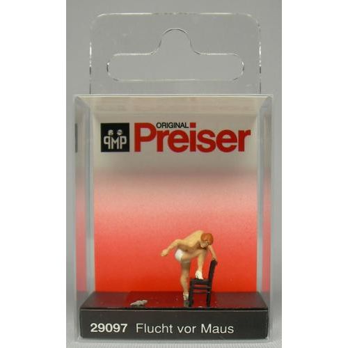 PF29097 ネズミから逃げる女性 塗装済 1/87 H約1.5cm 1体+イス+ネズミ