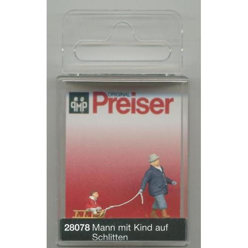 PF28078 男性とソリに乗った子供 塗装済 1/87 H約2cm 2体入